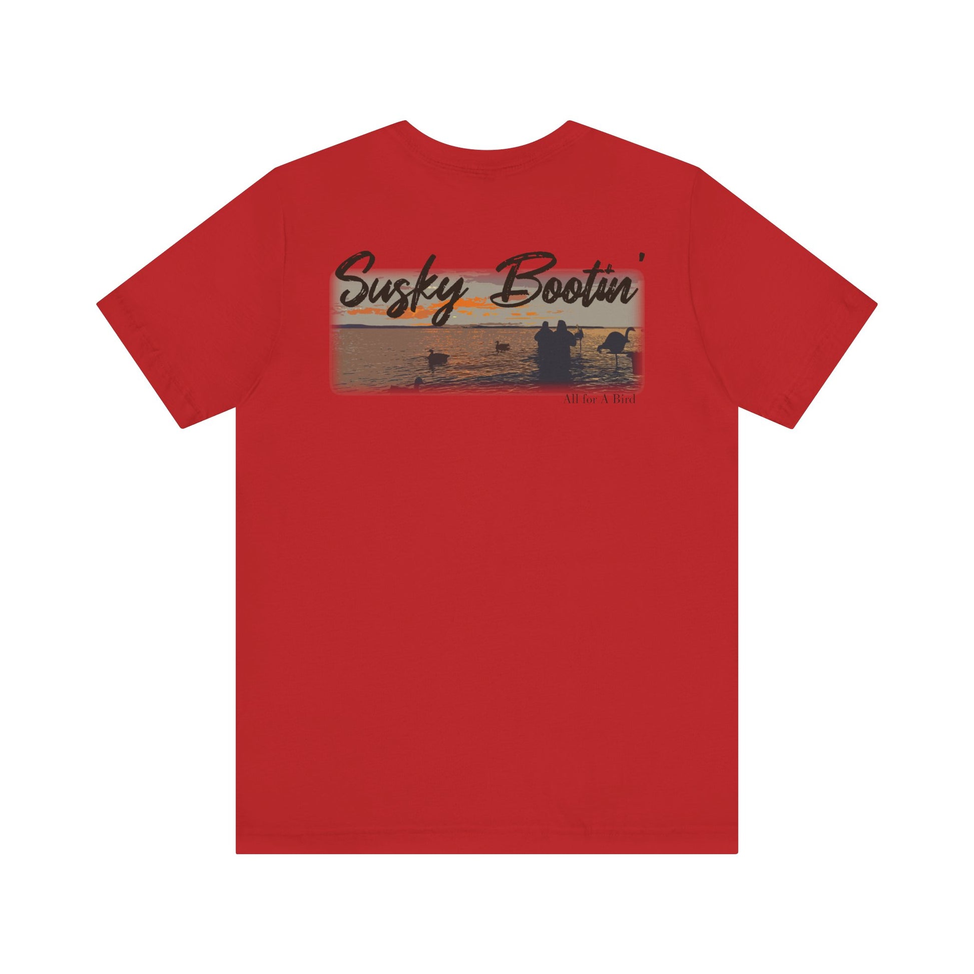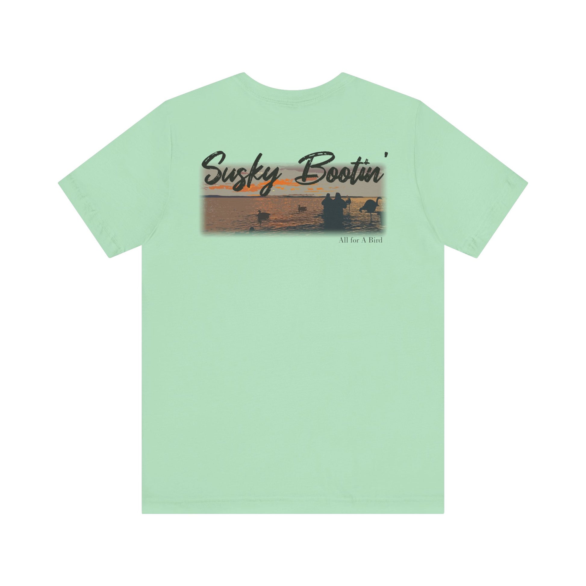 Step into the heart of waterfowl country with our Susky Bootin’ shirt, inspired by the soul of the Susquehanna Flats. This design captures the silhouette of hunters wading at dawn, surrounded by decoys and distant geese, all set against a peaceful Eastern Shore sunrise. With bold, weathered script across the sky and “Havre de Grace, MD” anchoring the moment, this shirt honors tradition, grit, and the calm before the chaos of the hunt.